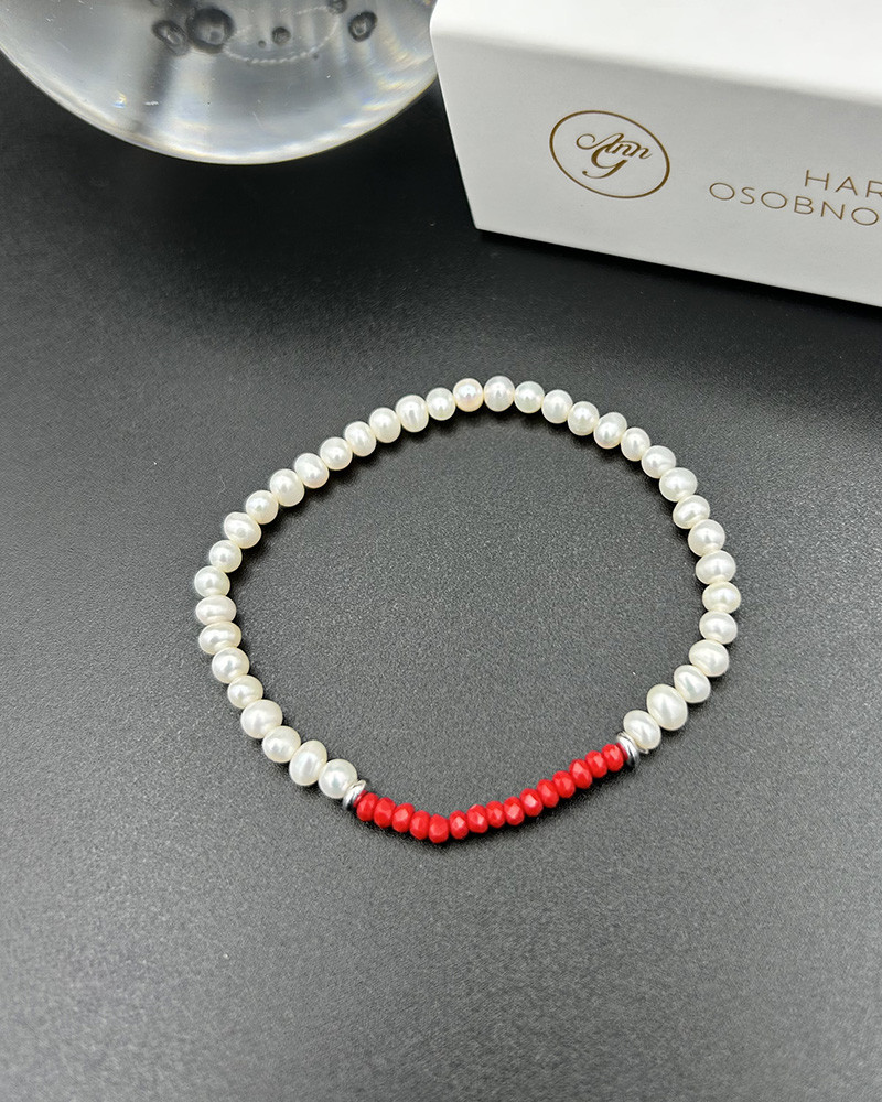 Perlový náramok červená Preciosa