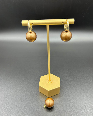 Perlové náušnice gold brown
