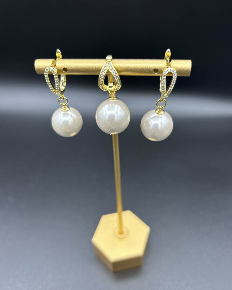 Perlové náušnice béžové so zirkónmi