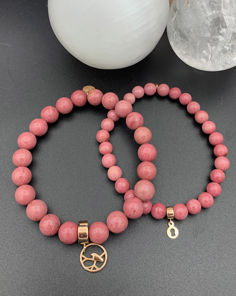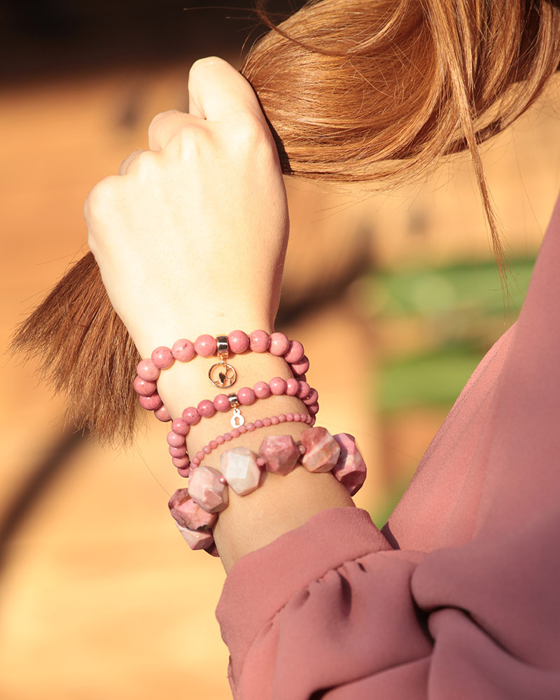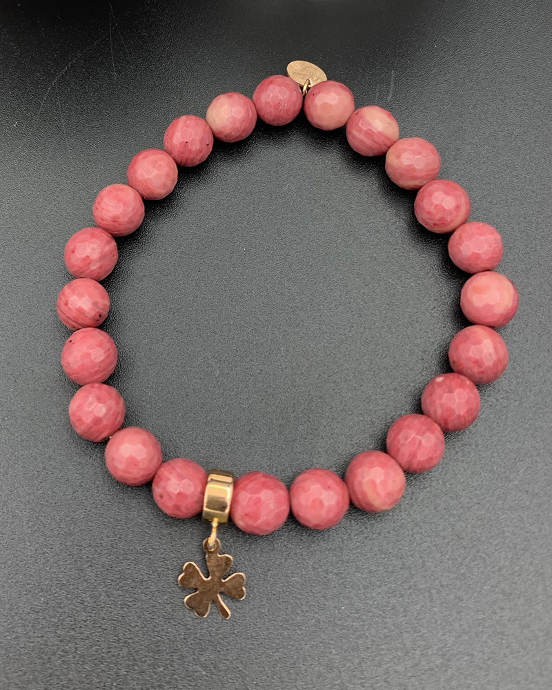 Náramok z rodonitu so zlatým štvorlístkom