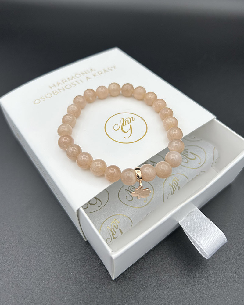 Náramok zo slnečného kameňa so zlatým štvorlístkom
