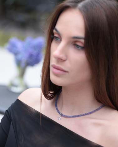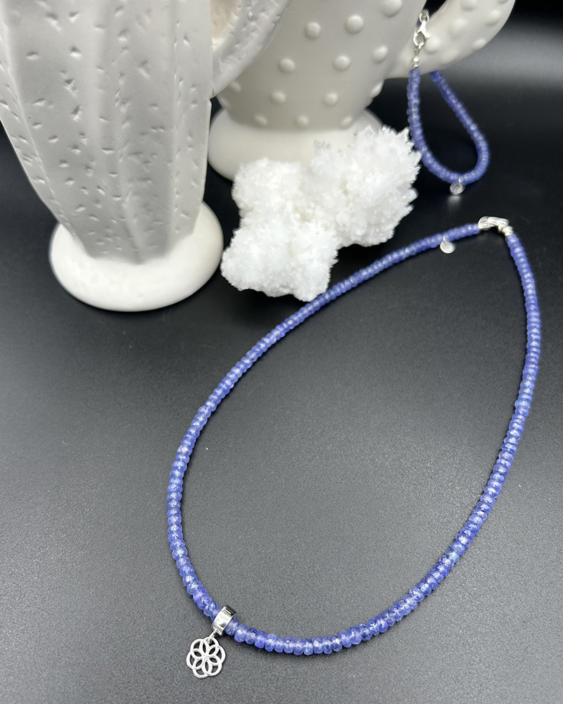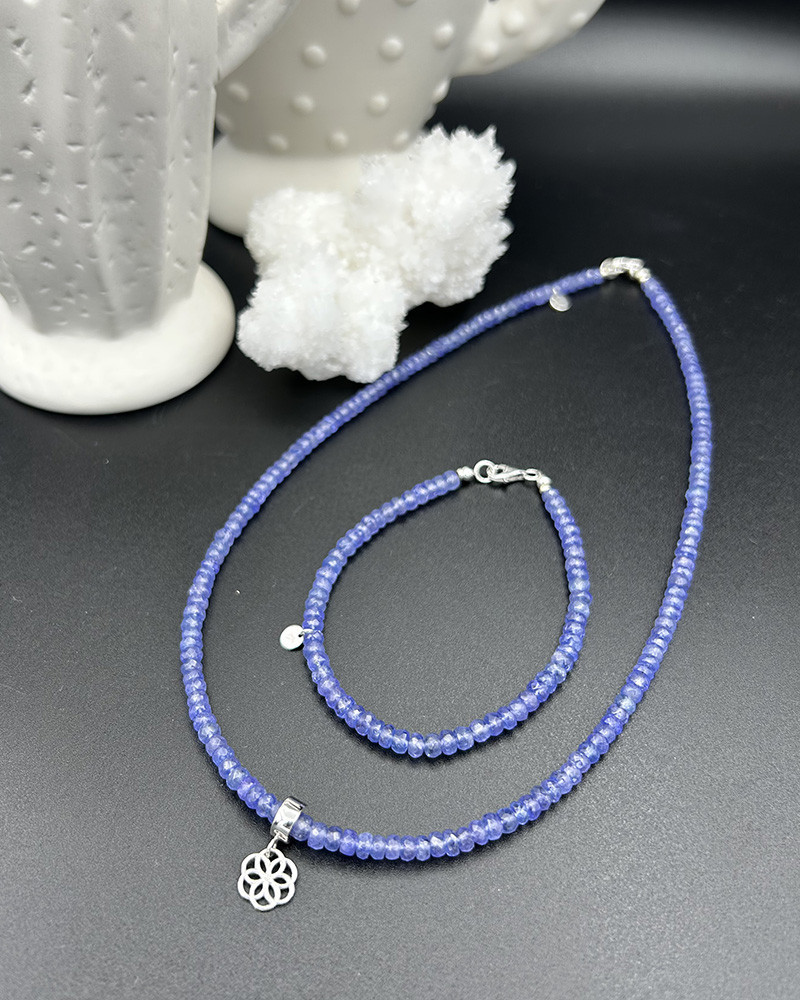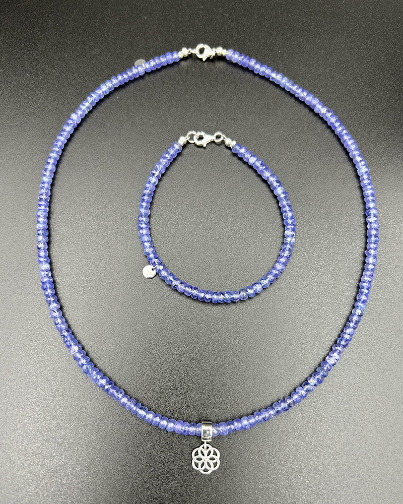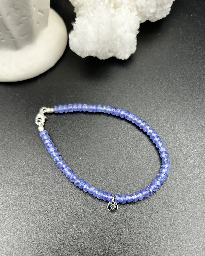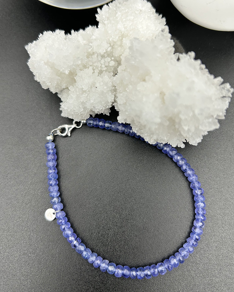 • korálky rondelky z pravého Tanzanitu šperkárskej kvality AAA 4x4 mm na kovovom lanku