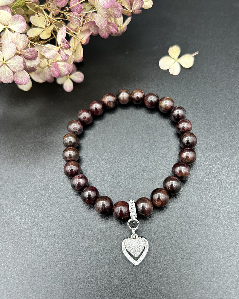 Náramok granát so srdcom bižu