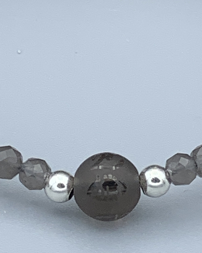 • korálka záhnedy s vylešteným nápisom tibetskej modlitby